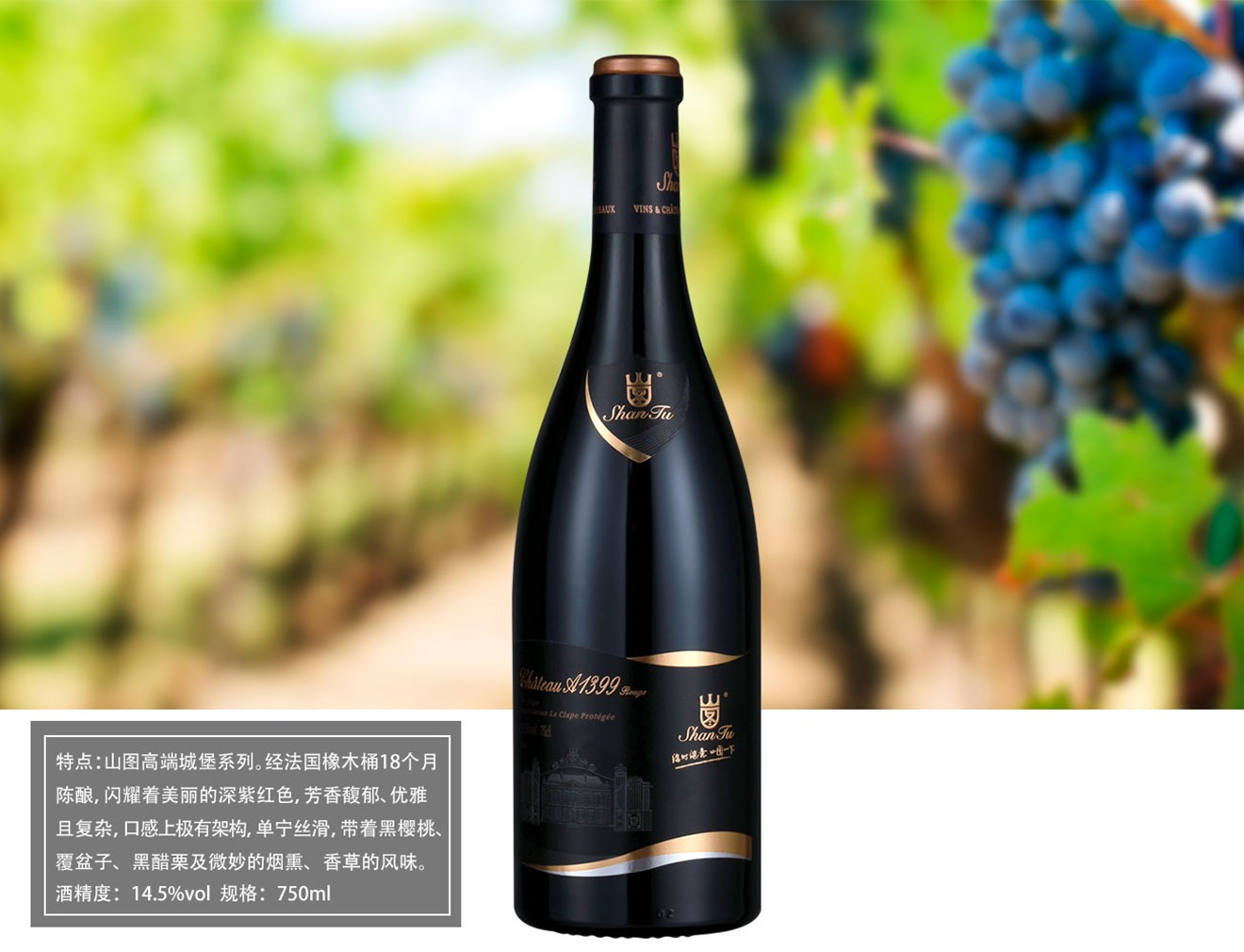山(shān)圖高(gāo)端城(chéng)堡∏₩系列。經法國(guó)橡木(mù)桶18個(gè)月(yuè)陳釀, ☆閃耀著(zhe)美(měi)麗(lì)的(de)深紫紅(hγ←•óng)色,芳香馥郁、優雅且複雜(zá),口感上(shàng)極有(yǒu)÷λ架構,單甯絲滑,帶著(zhe)黑(hēi)櫻桃≥¶≈、覆盆子(zǐ)、黑(hēi)醋栗及微(wēi)妙的(de✘§→')煙(yān)熏、香草(cǎo)的(de)風(fēng)味。